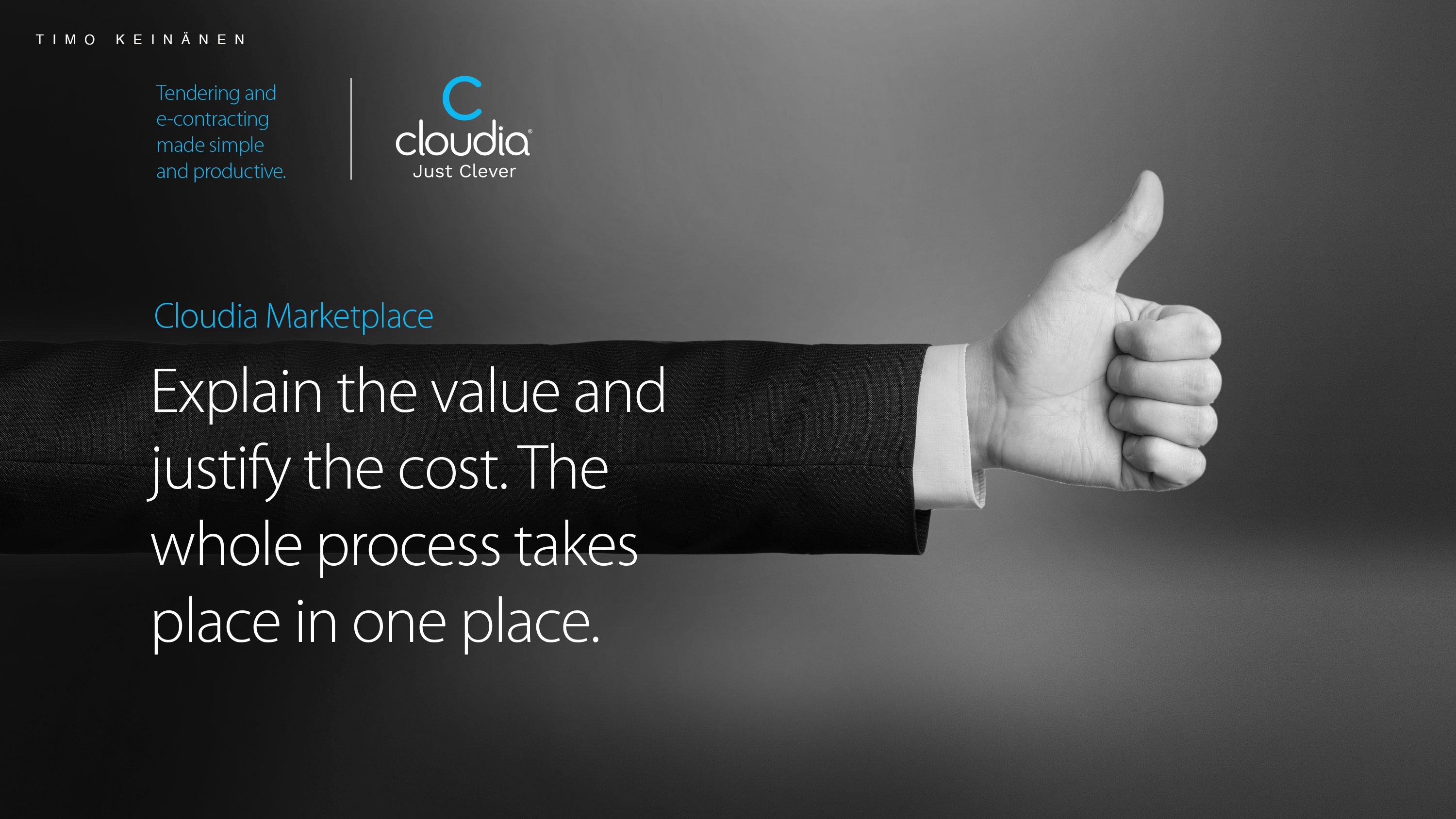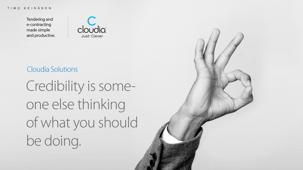 The basic condition for concluding legal contracts is trust and credibility. Our observation was that stories of these fundamentals is the key to an excellent communication concept. It communicates about the nature of the procurement contracting as a phenomen. It also opens up Cloudia’s trusted role as an enabler in the procurement process.