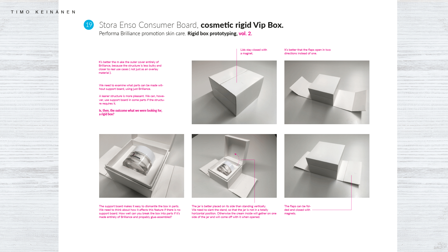 We attracted a Finnish company and design icon, Marimekko, as a partner for this venture. Kirsti Paakkanen, managed the company at the time. With her and her team we developed a few applications to test carboard packagings in practice with non-food consumer products. One example of these experiments is the Marimekko’s “Jokapoika” shirt consumer packaging series.