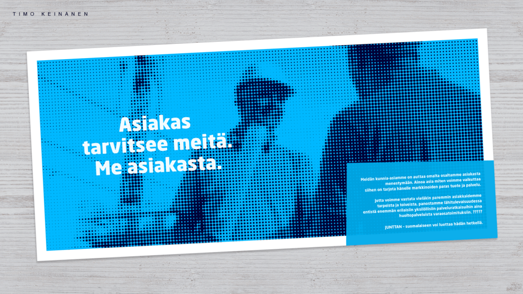 “Digimarkkinointia yksinkertaisesti” ( “Simply digimarketing” ) is a communication concept created to make sense to a complex sales pitch set. Breathtakingly long explanations about the versatility and superiority of advertising services were reduced to a simple level. It makes selling to new customers much more approachable and easier.