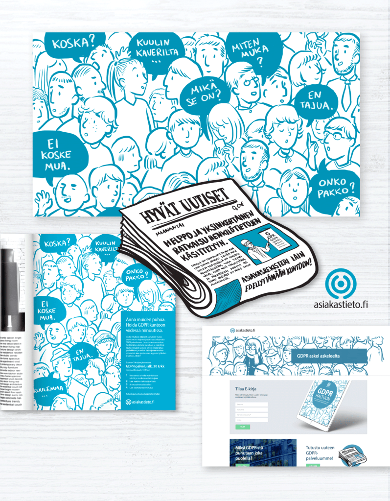 GDPR product launch campaign. Visual and content concept creation, graphic design, radio campaign, illustrations, material production management.
