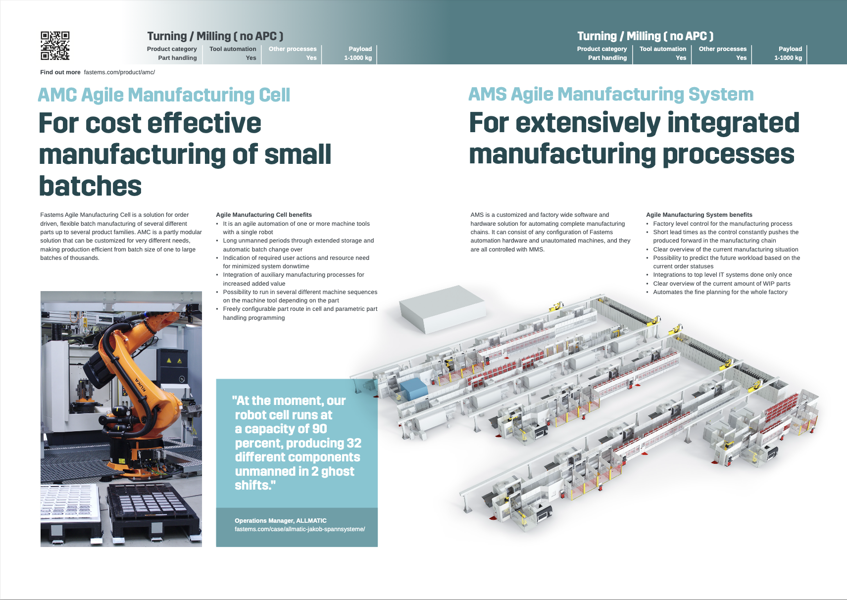 Fastems factory automation. Automation solutions for high-mix CNC manufacturing. And robotic solutions with production planning and execution software. In short high-end expertise in factory automation and everything that comes with it.